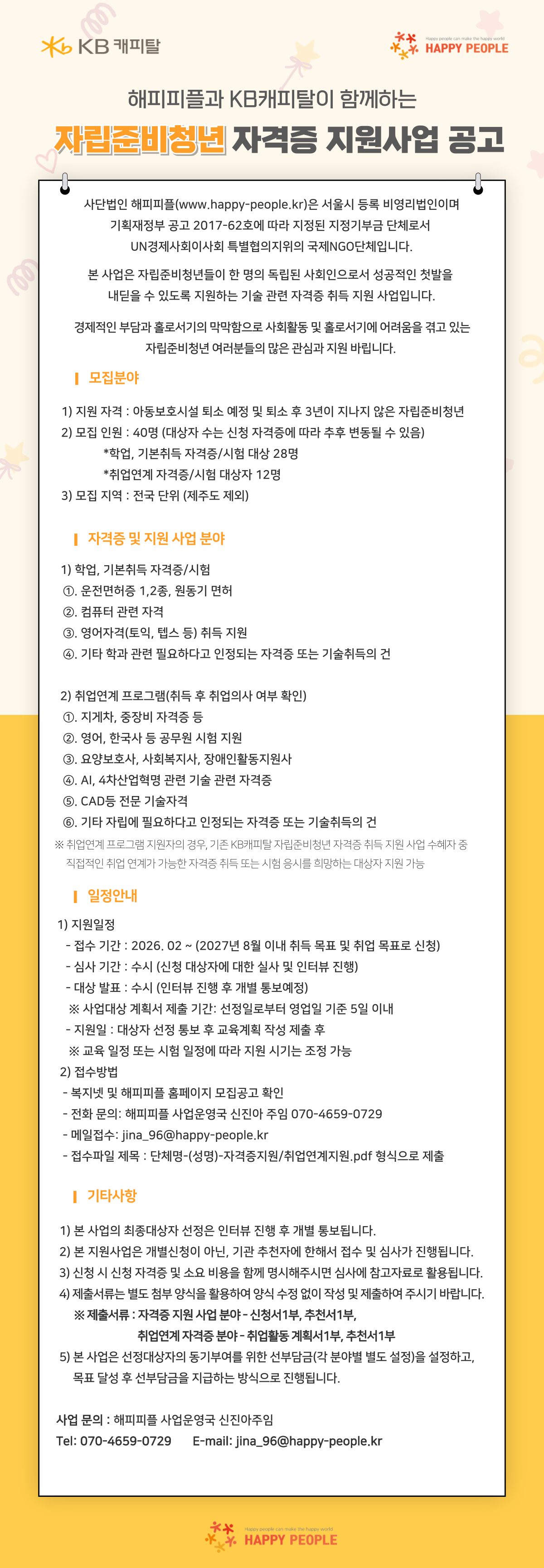 사회공헌공모 [해피피플] 해피피플과 KB캐피탈이 함께하는 자립준비청년 자격증 지원사업