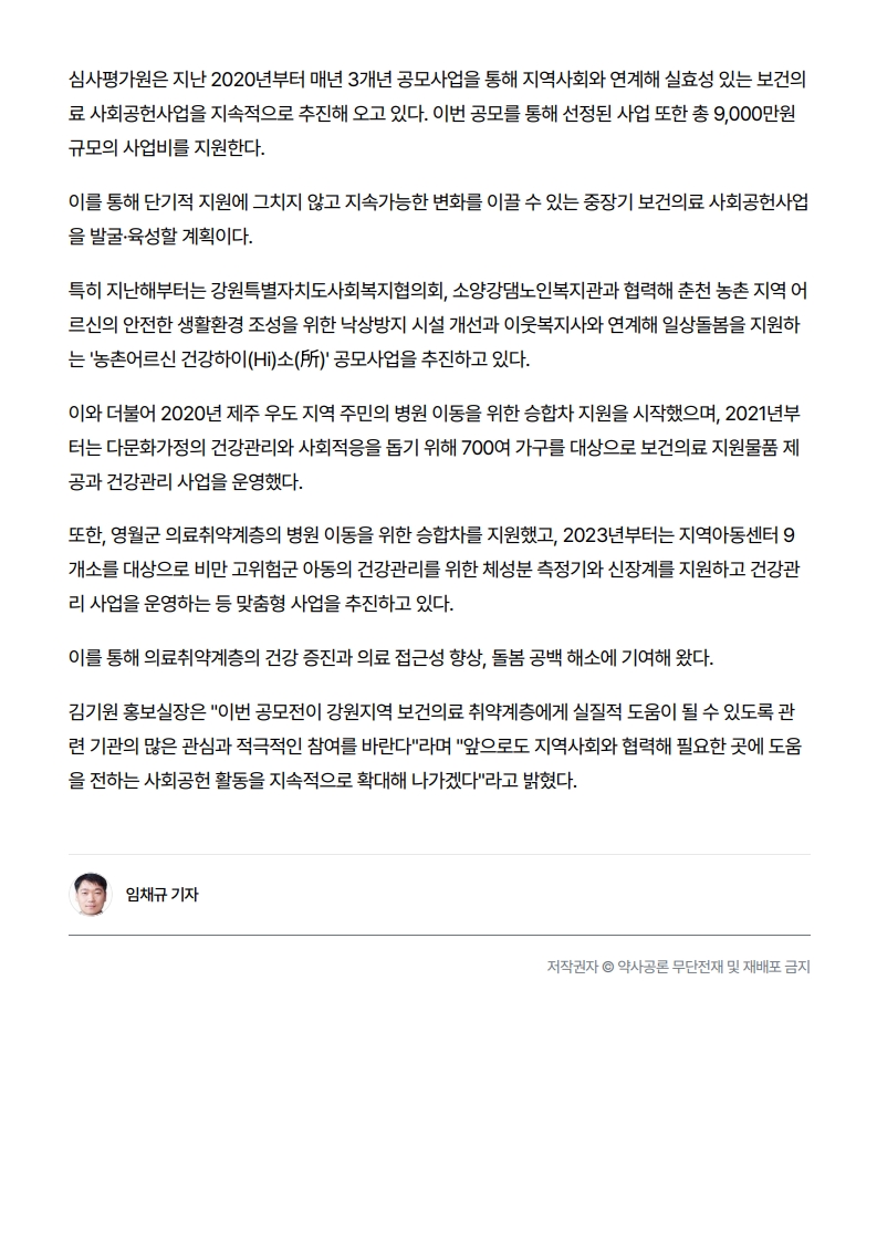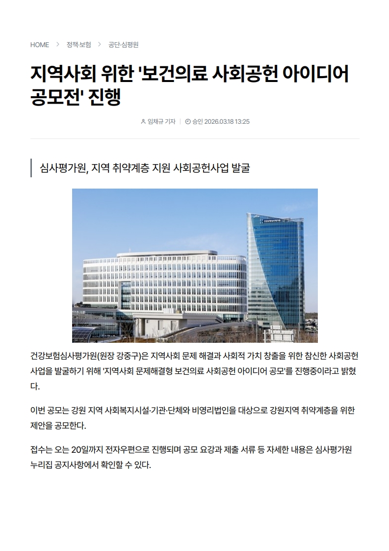 사회공헌기사 심평원, 보건의료 사회공헌 아이디어 공모