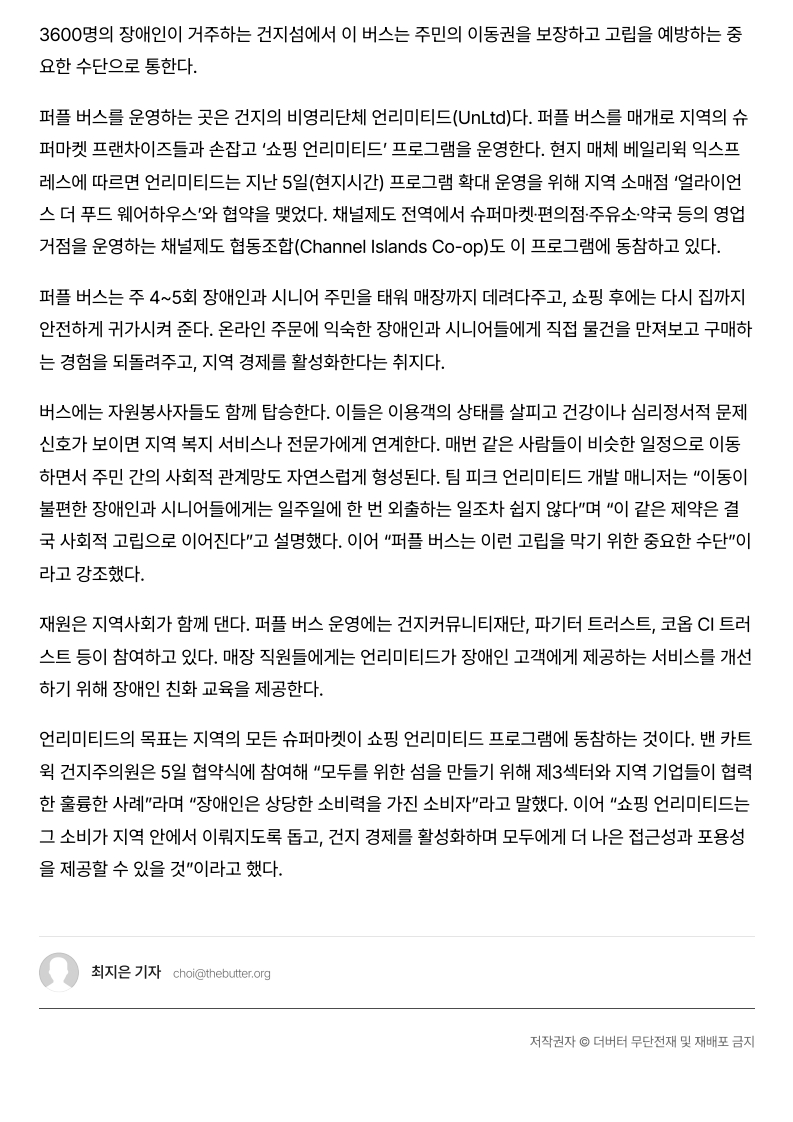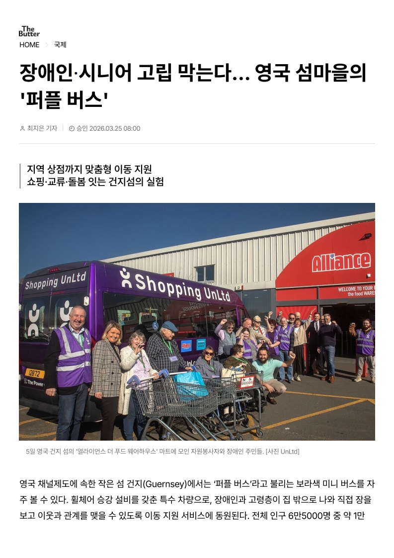 사회공헌기사 장애인ᐧ시니어 고립 막는다... 영국 섬마을의 '퍼플 버스'