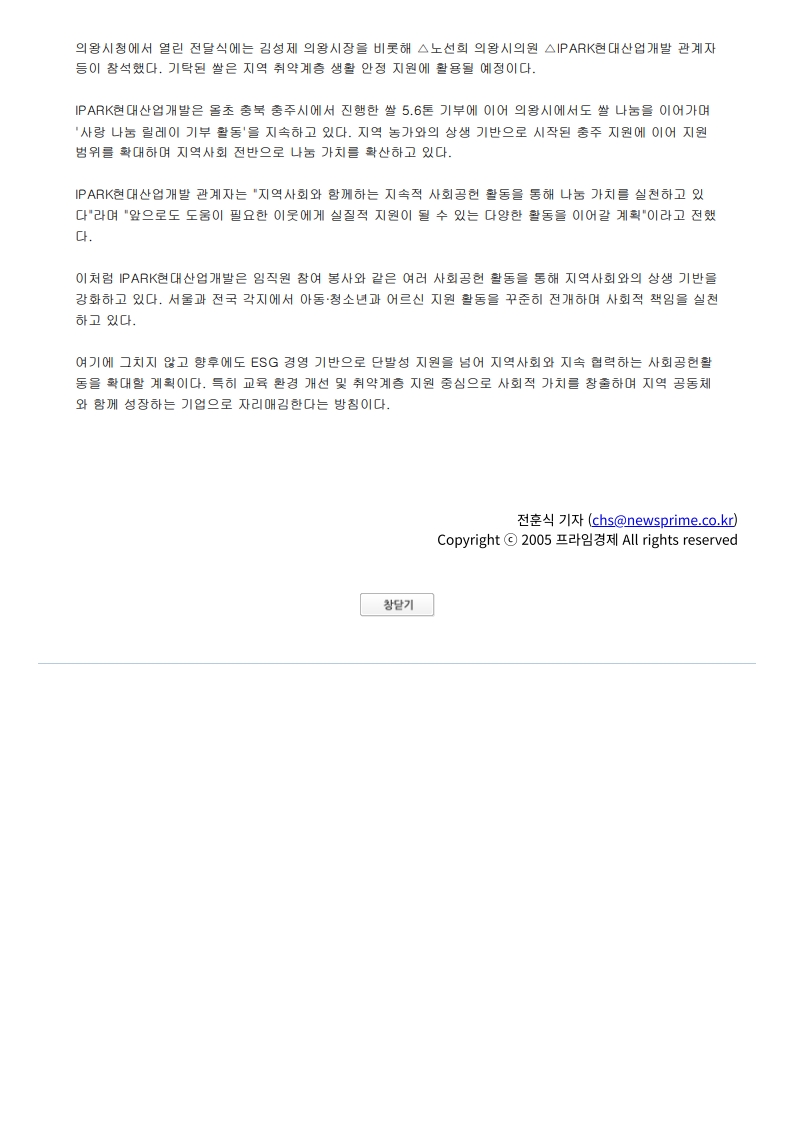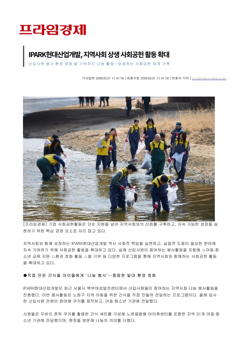 사회공헌기사 IPARK현대산업개발, 지역사회 상생 사회공헌 활동 확대