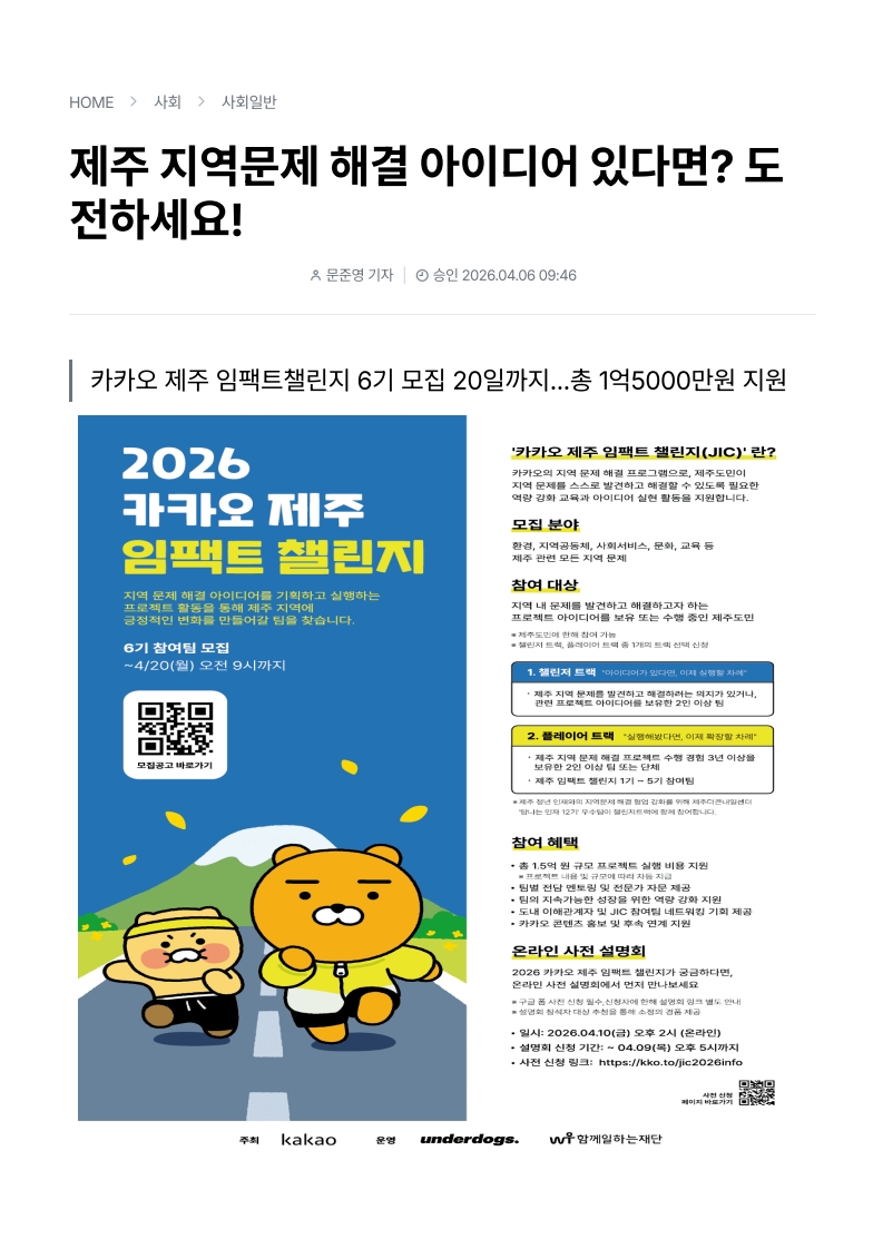 사회공헌기사 제주 지역문제 해결 아이디어 있다면? 도전하세요!