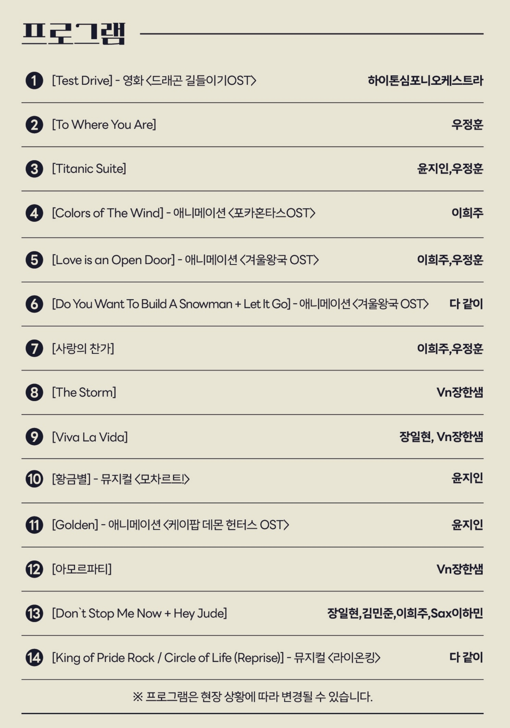 본 콘서트는 한전의 사회공헌 활동의 일환으로, 취약계층 및 지역사회와의동반성장과 문화예술 발전에 기여하고자 기획되었습니다.